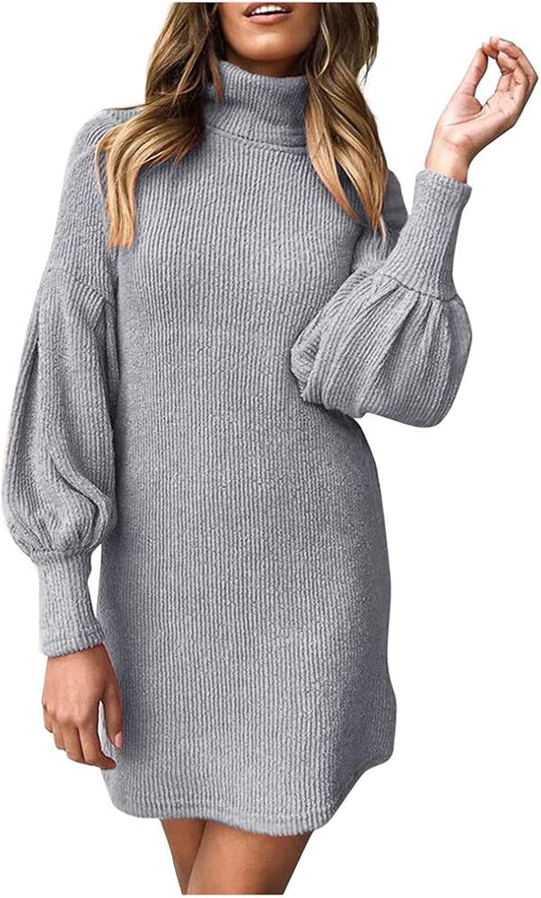 Puff Sleeve Ribbed High Neck Jumper long jumper dress uk