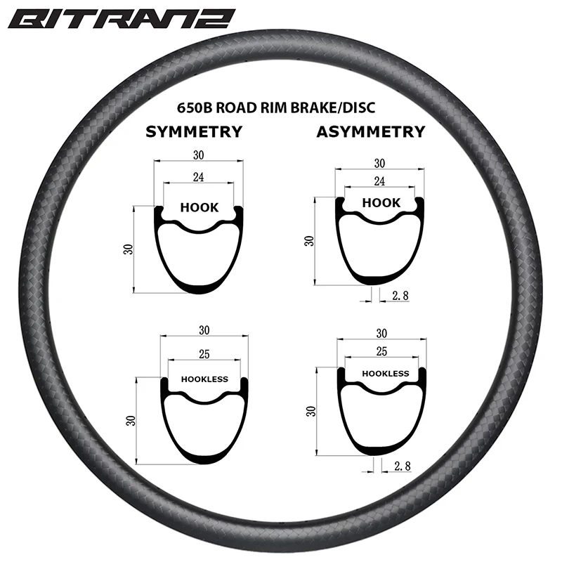 650B Road Rim Brake or Disc Gravel Bike Wheels 30mm Carbon Clincher Tubeless Bicycle Rims 650b gravel rims