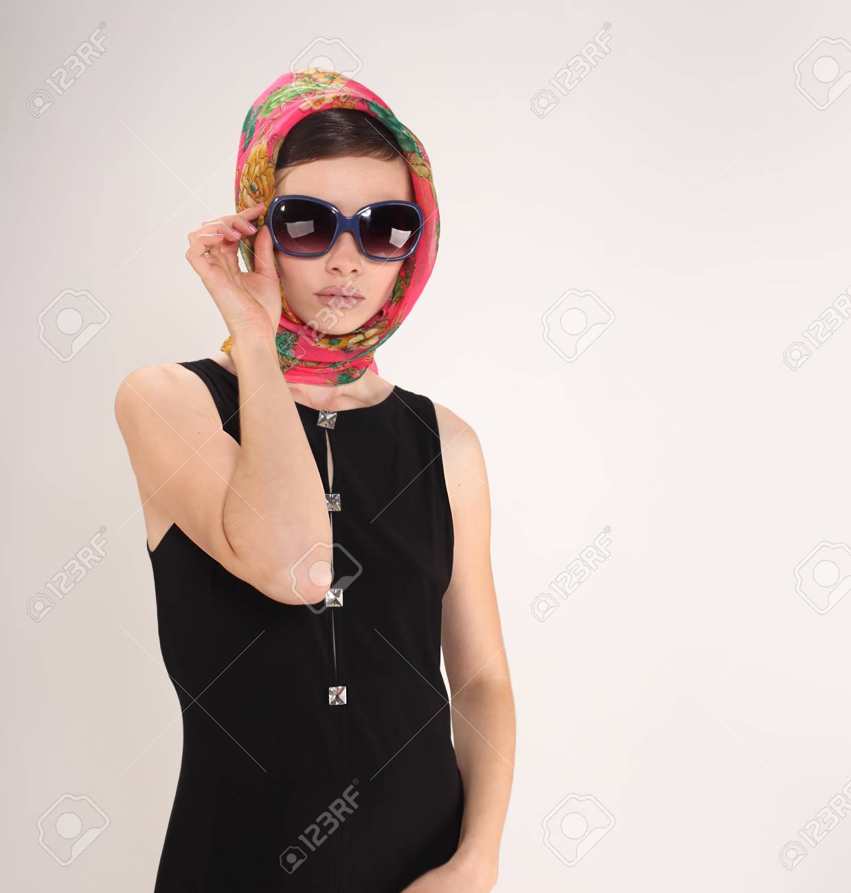 Beautiful Woman In Retro Style With headscarf and sunglasses