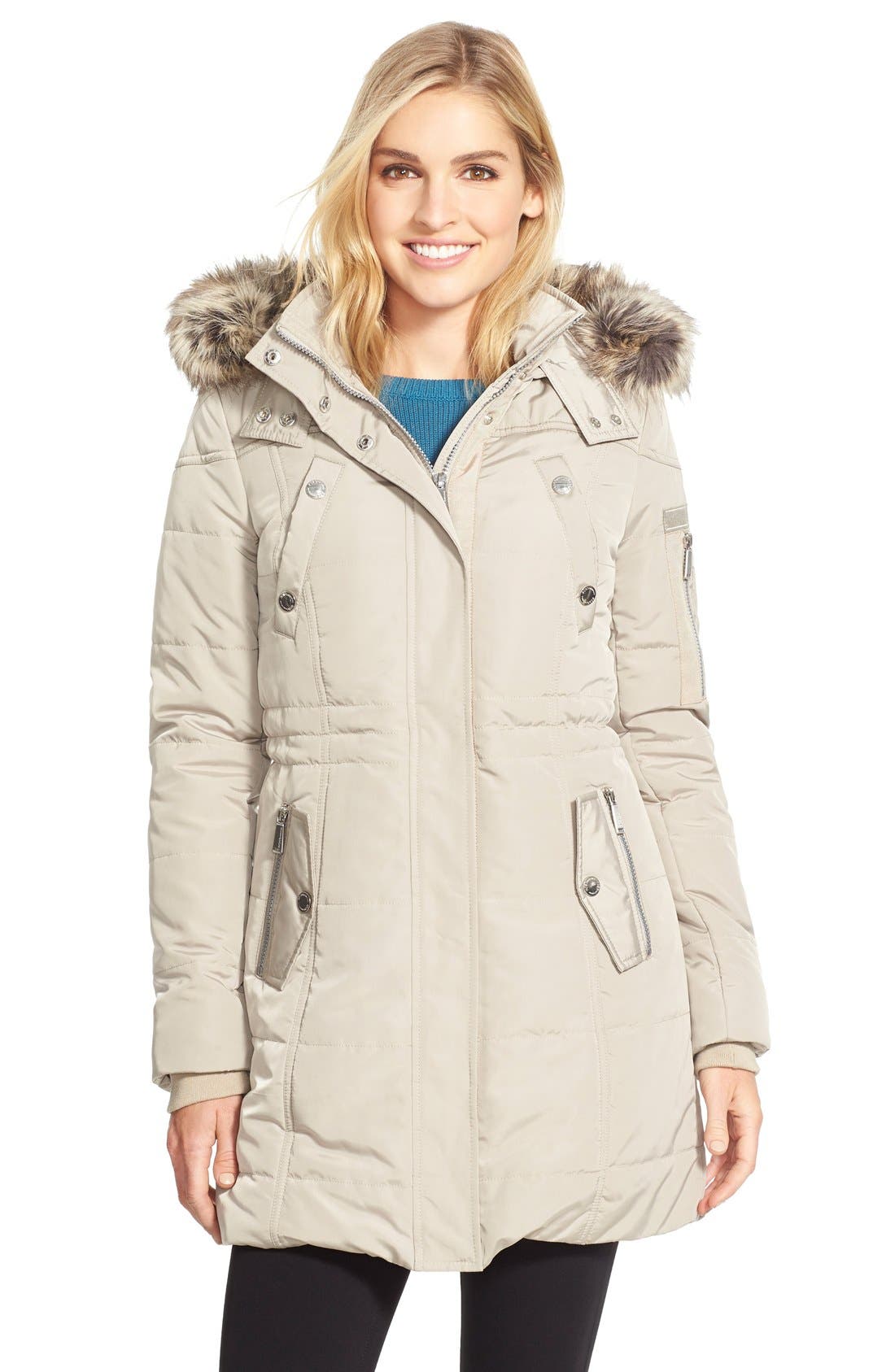 BCBGeneration Faux Fur Trim Hooded bcbgeneration faux fur trim hooded quilted jacket