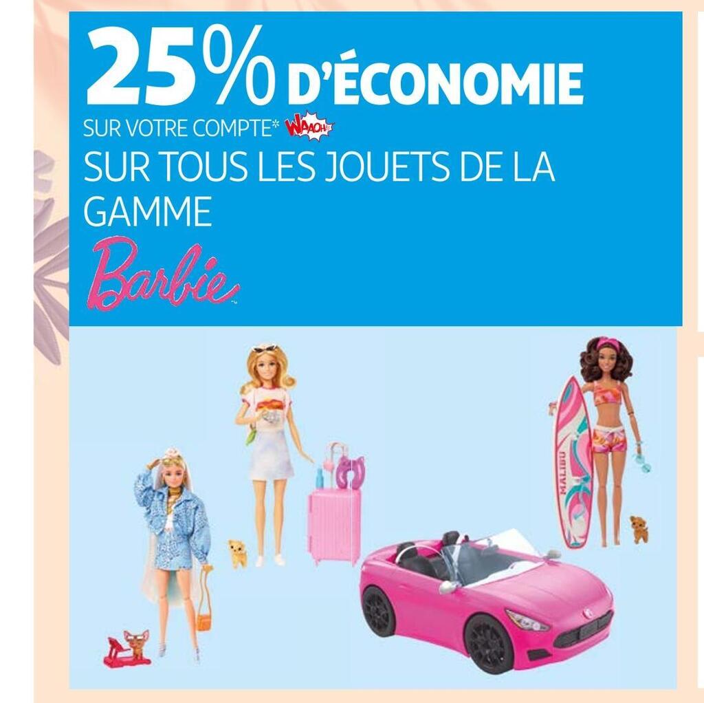 Promo Barbie 25% dâéconomie sur votre compte waaoh! sur tous les jouets de la gamme barbie chez auchan barbie