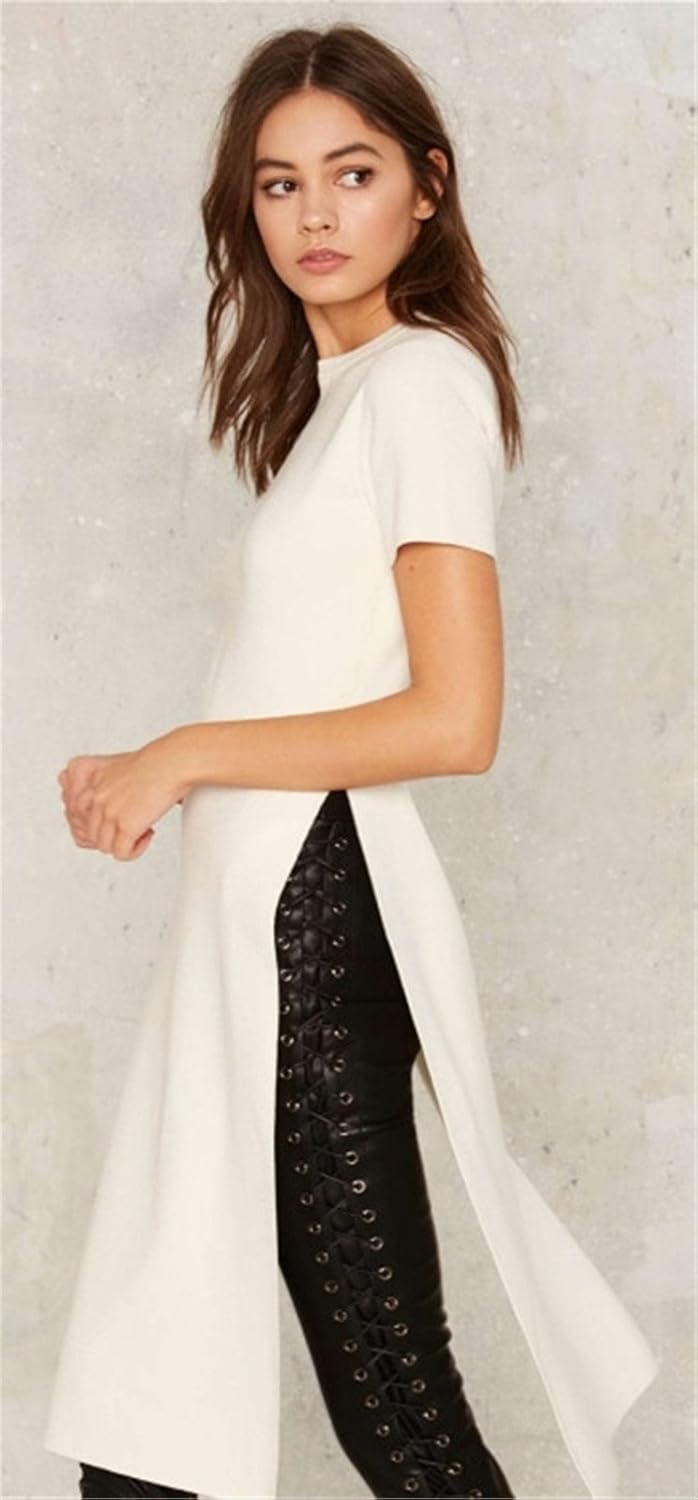 41% OFF] 2020 T-shirt Long Fendu Haut Col Rond En Blanc tee shirt long fendu