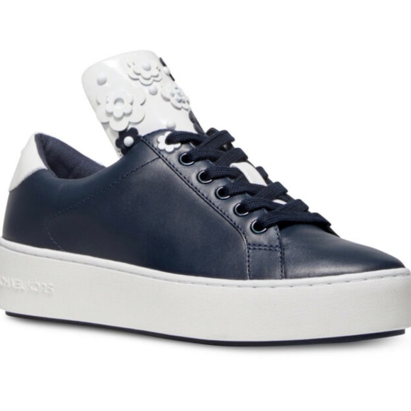 Michael Kors Shoes | Mindy Navy Blue allie floral appliqué leather sneaker