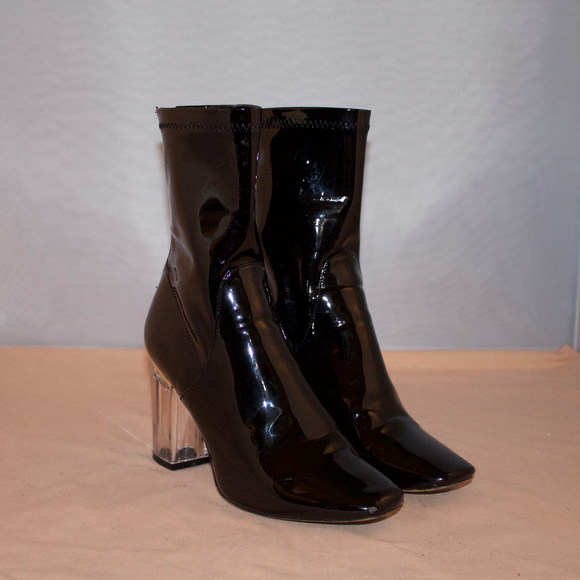 Bebo Women's Black Patent Leather Boots patent leather boots with clear heel