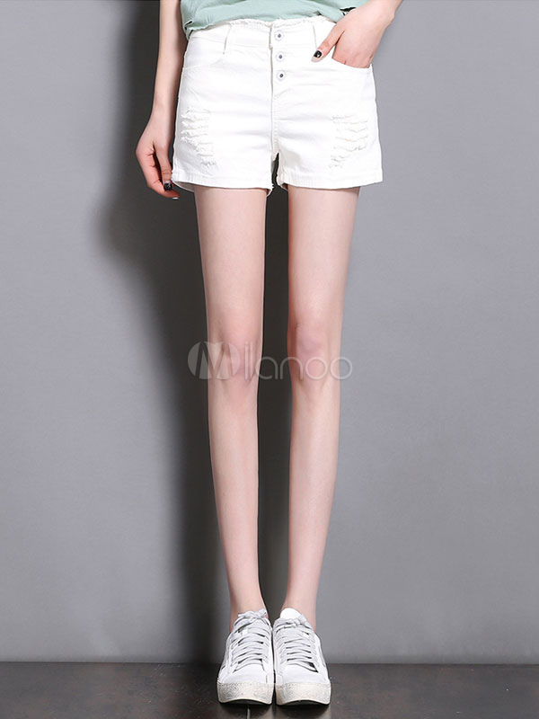 Pantaloncini bianchi zipper vita alta in denim - Milanoo.com shorts bianchi vita alta