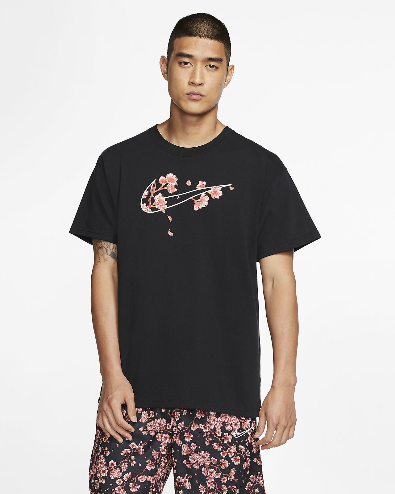 Nike - 892215-011 - t-shirt nera con stampa a fiori - nero asos