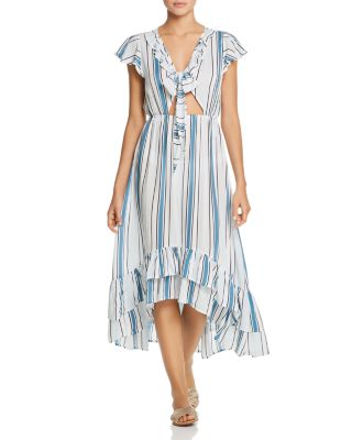 Surf Gypsy Striped Tie-Front Ruffle maxi dress swim cover up