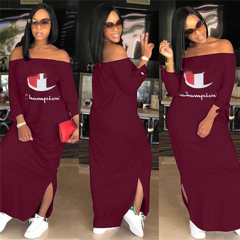 Dress Summer Letter Print Off Shoulder red champion dress