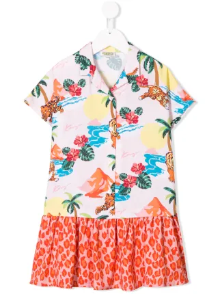 Kenzo Kids Tropical Print Shirt Dress tropical print shirt dress